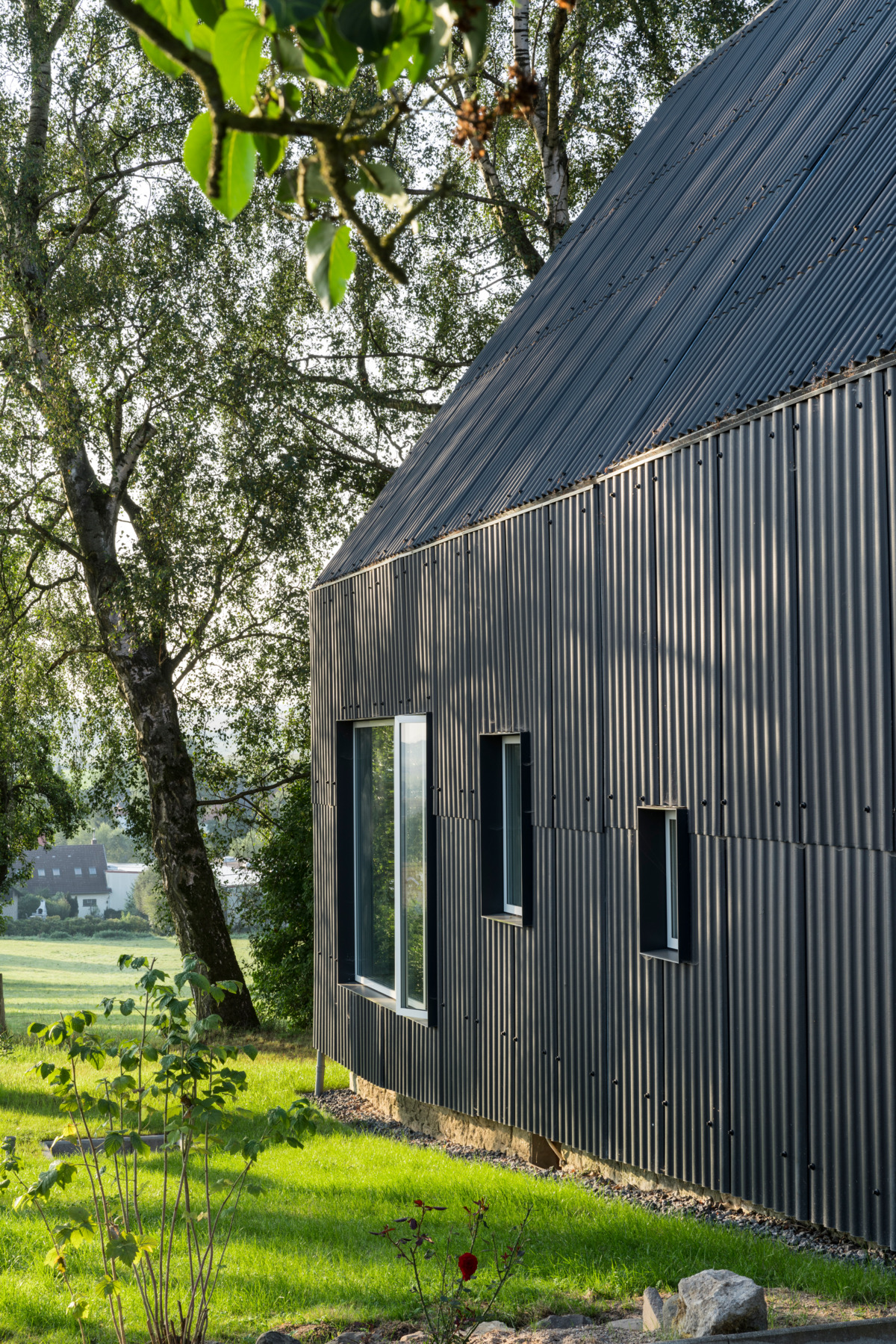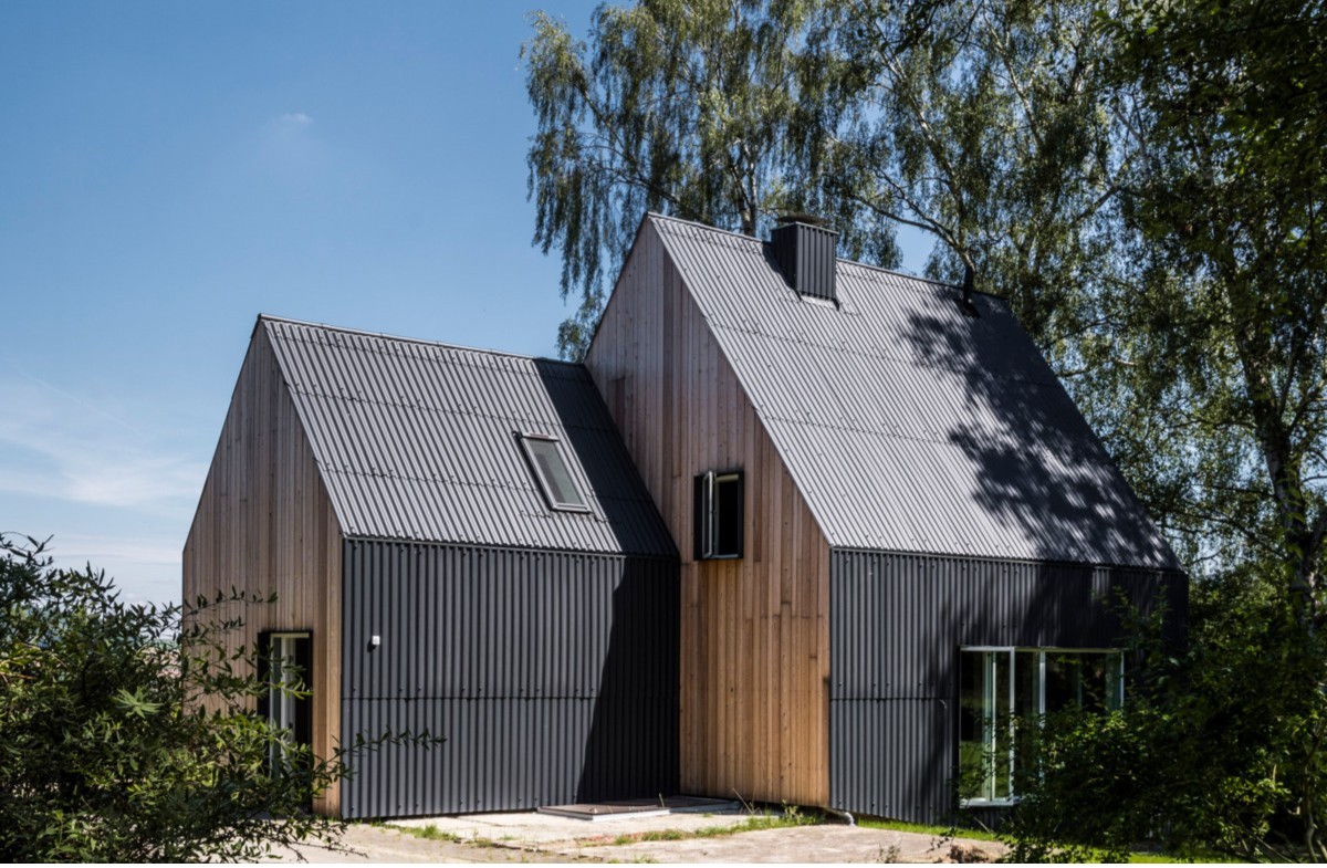 Izmantojot vienus un tos pašus lokšņu tipus abiem – ēka iegūst harmonisku un mūsdienīgu vizuālo tēlu.